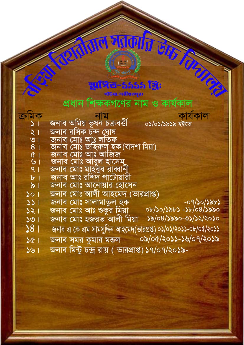 প্রধান শিক্ষকগণের নাম ও কার্যকাল